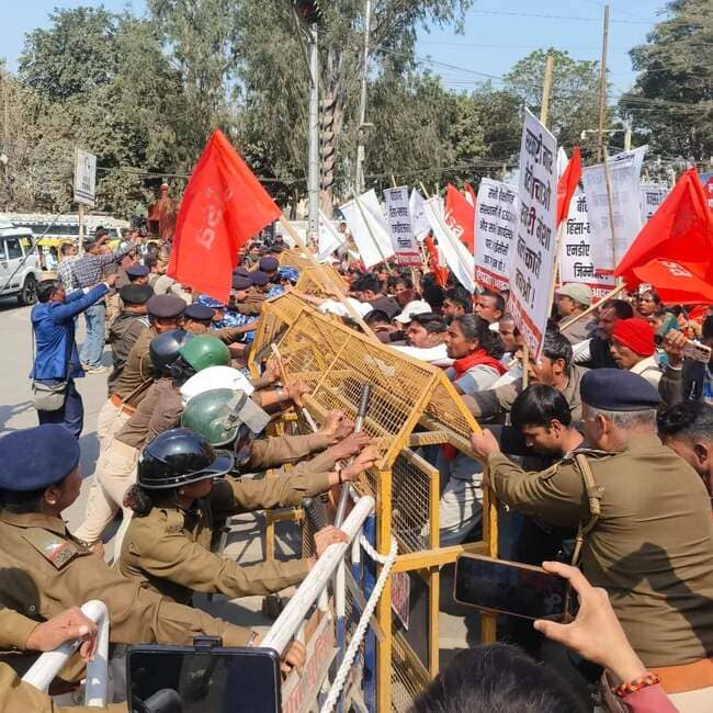 Police said the demonstrators gathered at the crossing, disrupted traffic movement and attempted to breach barricades. SP (Central) Bhanu Pratap Singh said mild force was used to disperse the protesters after they refused to clear the road, adding that no lathi-charge was carried out. He said the memorandum was submitted to the competent authority at the spot.